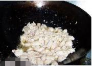 放入腌制好的鸡丁。