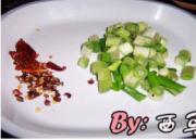 大葱切丁,准备好辣椒 花椒。