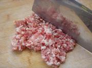 将肉馅剁成肉糜备用。