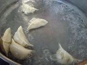 起锅加清水烧开,下入饺子生坯煮熟。