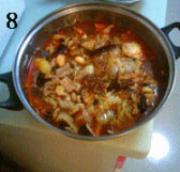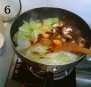 放土豆片煮至8成熟下肉片,白菜,香菇,加盐,同煮,快熟的时候根据自己的口味加盐, 糖,醋,鸡精 调味。
