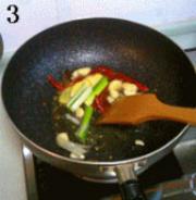 锅放少量油烧开放花椒大料,小干辣椒,葱姜蒜炒香。