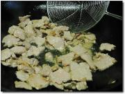 肉切片,稍微有点厚度,白菜切小块。干辣椒切碎。香菜切断。把肉用蛋清和生粉加少许盐鸡精腌好,炒锅放油,油要稍微多点,油五成热时把肉片倒入油中用筷子滑散,待肉色全部转白,把肉片捞出备用。