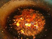 油锅爆香辣椒 花椒(花椒捞出待用)。