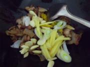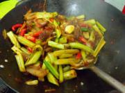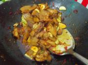 把肉片倒入煸炒到全部上色。放料酒,糖,蒸鱼豉油,大火爆炒。