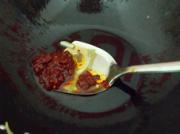 重新放入植物油,(不要用炸出来的猪油。猪油可以用来炒素菜,超级好吃。)炒郫县豆瓣酱,小火炒出红油。