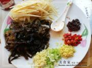 里脊265克(半斤左右都可以);泡发好的木耳100克约6朵;葱30克;蒜25克约5瓣;姜10克;剁椒20克;冬笋(玉兰片)150克;食用油100克;郫县豆瓣酱20克;