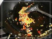 倒入葱姜蒜末和一大勺剁椒,煸出香味。