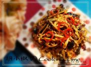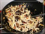 木耳和冬笋丝入锅,仍然大火翻炒,约1.5分钟。