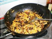 倒入肉丝,迅速翻炒几下,约1分钟。