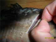 在鱼的前后各切一刀,把腥线去掉,两边的都去掉。