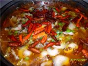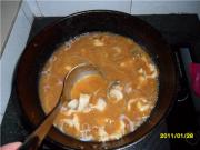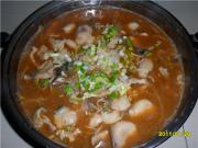 剩下的汤用淀粉勾芡,下入浆好的鱼片划散。