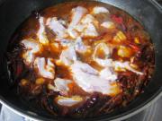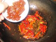 把剩下的辣椒锅里,加入辣豆瓣酱,出味后加水。