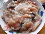鱼片用盐,胡椒粉,蛋清抓匀,淹渍十分钟后撒淀粉抓匀备用。