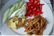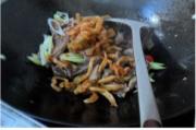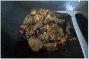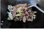 然后加大葱、小米椒一起不停翻炒出香味加盐继续煸炒。