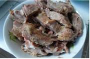 鸭子洗净,用大葱、姜片、花椒冷水下锅煮八分熟。