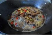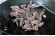 起锅热油下姜煸香、再倒入鸭块煸炒。
