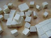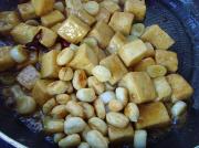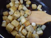 豆腐块以中火炸至金黄色,捞起沥干油。