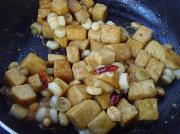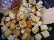 倒入炸好的豆腐和葱白快速翻炒均匀。