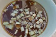糖、醋、生抽及蒜末、葱花、淀粉调汁。