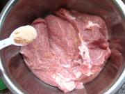 猪肉洗净,放入容器中,加1大勺盐抹匀,放入冰箱中腌制1天。