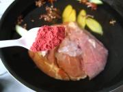 加了红曲粉煮好的肉颜色很鲜艳,熏的时候更容易上色。时间: