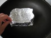 取一个炒勺坐炉子上,将锡纸折成一个小盒子。