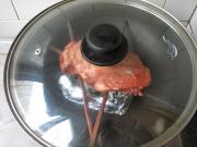 盖上锅盖,开大火,等锅中冒出浓烟将火关掉,焖10分钟,然后将肉翻面,再重复以上操作,直到肉的颜色变成自己觉得满意为止。