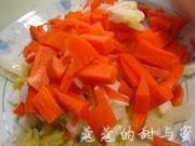 四川泡菜切成条备用。