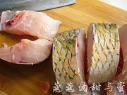 草鱼去鳞及内脏,洗净后横切成2-3指宽的段,再从中间对切开。