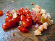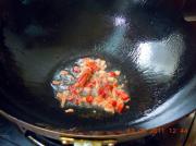 沥干水分的空心菜梗切成小粒。备用。