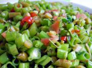 豇豆也跟空心菜梗切大小差不多的小粒。一段一段的切,不是剁碎!