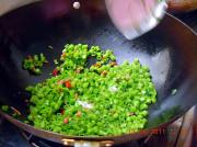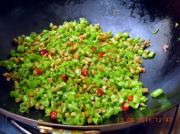 倒入泡豇豆,翻炒一分钟。加少许鸡精。