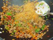 兑水,不要多,刚好到肉末边缘,我兑了小半饭碗水。放入粉丝。
