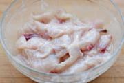 加料酒、蛋清、生粉、盐,拌匀;