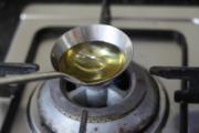 将剩余的100克油置于汤勺中,加热至冒青烟;