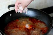 将水煮鱼调料倒入锅中;