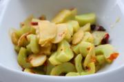 白皮黄瓜去皮籽,对剖后切成厚片,榨菜洗净切成大片;