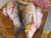 鱼一条,去鳞去内脏,在鱼身上切菱形花刀。