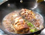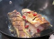 鱼煎好后放干辣椒,姜,蒜,葱炒香。