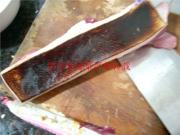 首先挑选上好的五花肉用火进行烫皮.再用温热水将五花肉洗净。
