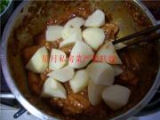 之后再将切好的土豆块倒入肉中搅和均匀.要努力使得每一块土豆上面粘上佐料。