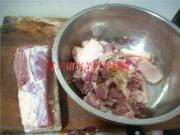 放入少许食盐.料酒.五香粉.老抽,豆腐乳,红糖,郫县豆瓣,花椒末.辣椒面.鸡精,调和油,姜末.码味半个小时.