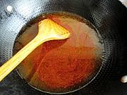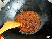 炒锅中少倒一些油放入火锅底料小火炒至。