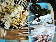 所有食材用竹签串好备用。