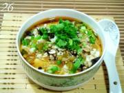 在做好的豆花里依次放入;永川豆豉油、香辣豆干丁、榨菜末、炒冬菜碎、碎花生米、蒜蓉、辣椒花椒油、香葱粒和香菜末便可上桌食用。