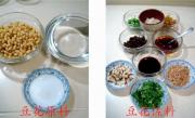 大豆、清水l、葡萄糖内酯、干炒冬菜、榨菜末、蒜末、辣椒花椒混合油、自制永川豆豉酱油、辣子五香豆干、油炸花生碎、香葱粒、香菜末等各适量。