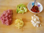 肉末、葱、姜、蒜末和辣酱。