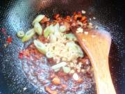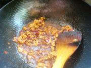 放入辣椒酱、酱油、醋、料酒、糖翻炒。
