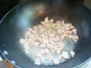 锅里放油,放入肉末煸炒。